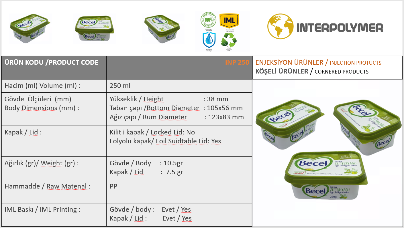 250ml iml plastic angular container / 250ml iml plastic angular container