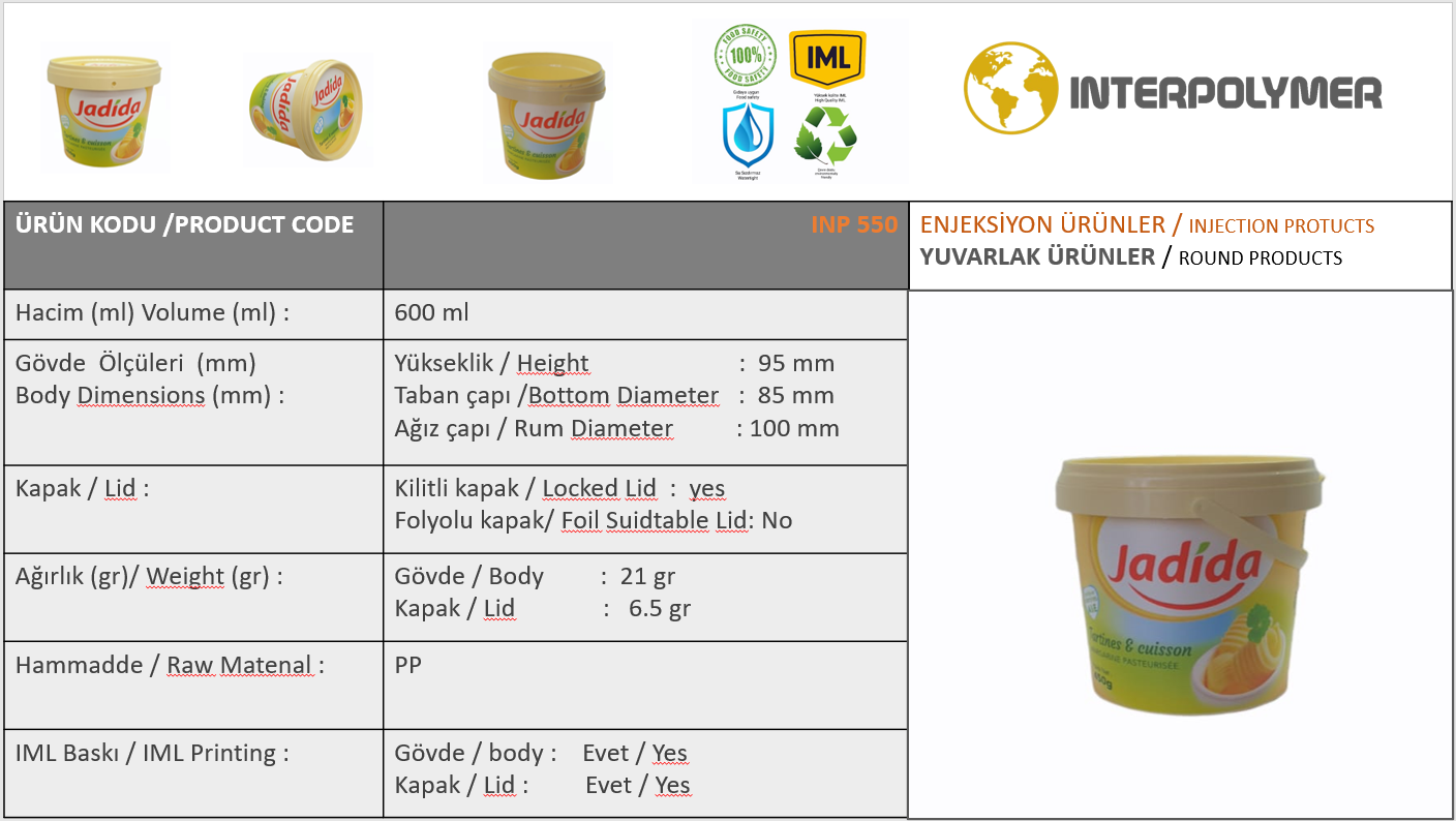 600ml iml round plastic bucket / 600ml iml round plastic bucket